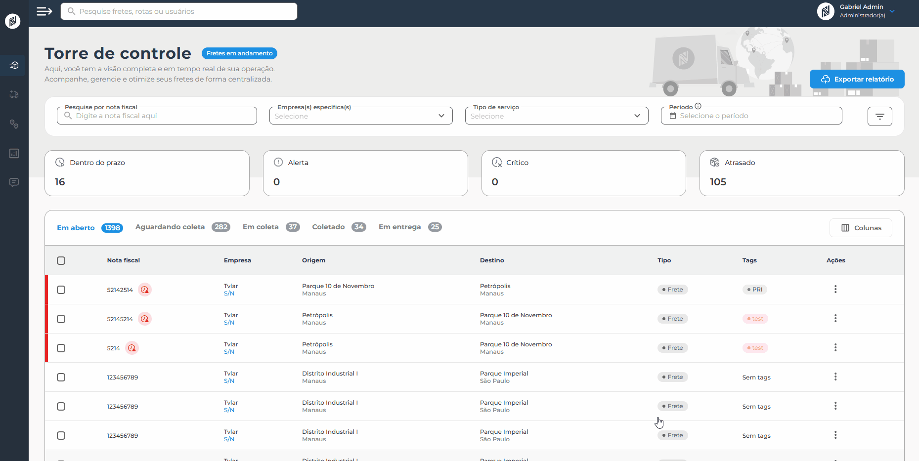 - Filtro por urgência (Convencional, Expresso e Emergencial).
